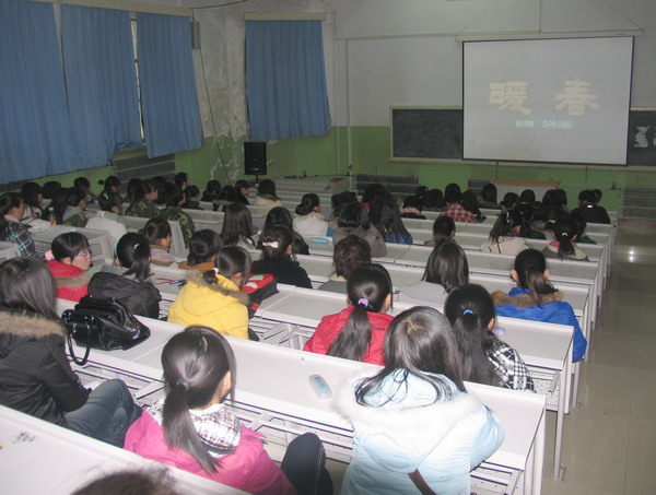 为了迎接即将到来的"三·八"国际劳动妇女节,为了更好的促进在校女生的身心健康发展。2009年3月4日下午5:30,电子与电气工程系学生会组织本系女生在学院小报告厅举办了一场发人深省的电影欣赏活动,本次活动由系女生部组织并负责,系辅导员林琼老师参加了活动。