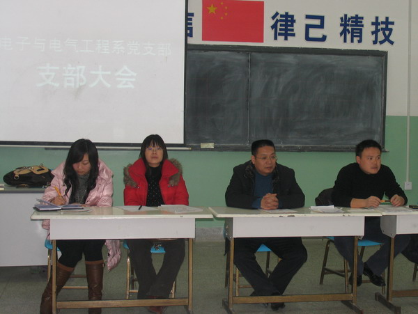2009年2月23日17:30,电子与电气工程系党支部在电力楼三楼多媒体教室召开了支部大会,就安雪洁等8名发展对象接收为中共预备党员进行讨论并表决。