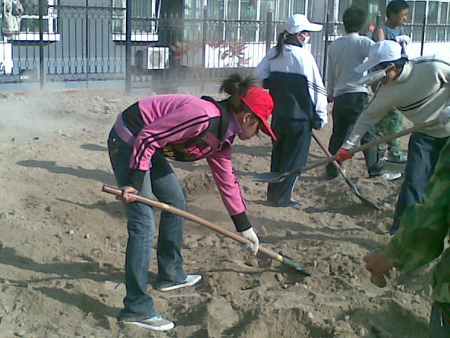 2008年10月18日,电子与电气工程系全体党员、积极分子及受国家助学金资助者来到劳动目的地平土垫方,大家带着赤诚和感恩的心,不怕脏不怕累,积极劳动,最终顺利完成劳动任务,经院总务处和独山子园林局领导的检查,劳动任务完成优秀,并得到相关领导的好评。
