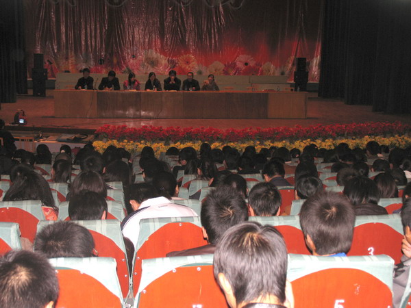 2008年11月9日晚9点,伴随着漫天的小雪,电子与电气工程系于学院俱乐部召开了08~09年度第一学期学生表彰大会,系学管主任葛跃田老师、系团总支书记王波老师、辅导员林琼老师及各班班主任参加了这次会议,林琼老师主持了本次会议。