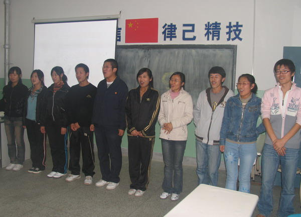 通过新颖的海报宣传,50多位对管理学感兴趣的学生走到了一起,开班课以团队游戏的形式开展,课程培训分为三个环节:课程柜架介绍,团队建设和交流分享。团队分为五组,以团队为单位上台进行六分钟的团队展示各自的队名、队徽、队呼、队歌,并由其它组的代表对该队的介绍进行赞美。为了在众多人中脱颖而出,他们自信大方、幽默风趣,不仅引来台下观众的阵阵笑声,连培训师也为他们的表现力感到惊讶。课堂上学员不再是“听课”,更多的是参与。在锻炼能力的同时,让大家了解企业职场细节,在求职过程和企业中以一名职业人的角色出现。