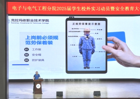 为全面做好2025届学生实习工作,确保实习工作落到实处,增强学生实习的积极性和主动性,同时帮助学生明确实习意义和目标,明悉实习安全注意事项,电子与电气工程分院于6月21日下午在大学生活动中心召开2025届学生校外实习动员暨安全教育大会,会议由分院副院长热米娜·帕尔哈提主持,分院党支部书记姚新冬、各教研室主任、毕业班班主任、实习指导老师及全体2025届毕业生参加会议。