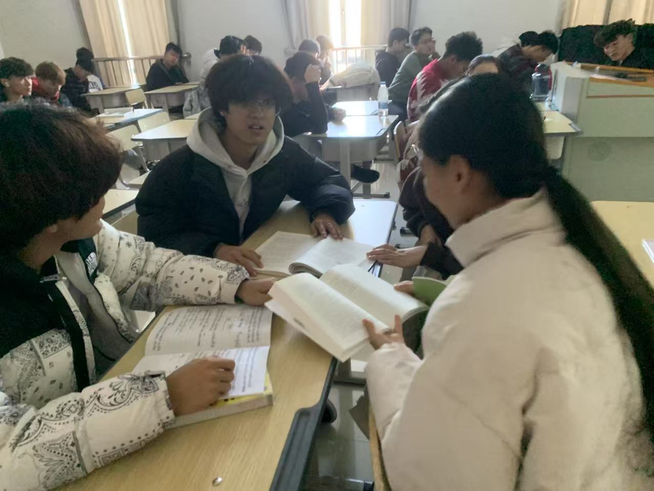 同学们在各班教室进行读书分享活动