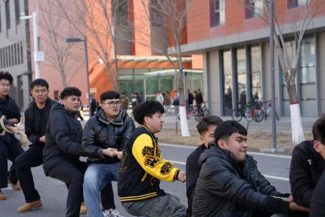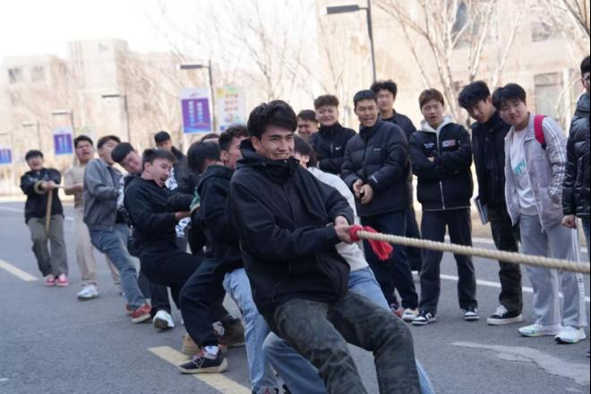在激烈的角逐中,多场比赛都进入了白热化阶段,双方僵持不下,胜负难分。尤其是电气2151和供电2332的决赛,更是将比赛气氛推向了高潮。两队队员实力相当,比赛一开始就陷入了胶着状态。绳索在两队之间来回移动,双方队员都拼尽全力,汗水湿透了他们的衣衫,但他们依然毫不退缩。在关键时刻,电气2151的队员们团结一心,喊着整齐的口号,发起了最后的冲刺。他们咬紧牙关,齐心协力,终于成功地将绳索拉过了红线,赢得了比赛的胜利。全场顿时响起了雷鸣般的掌声和欢呼声,电气2151的同学们欢呼雀跃,庆祝这来之不易的荣誉。