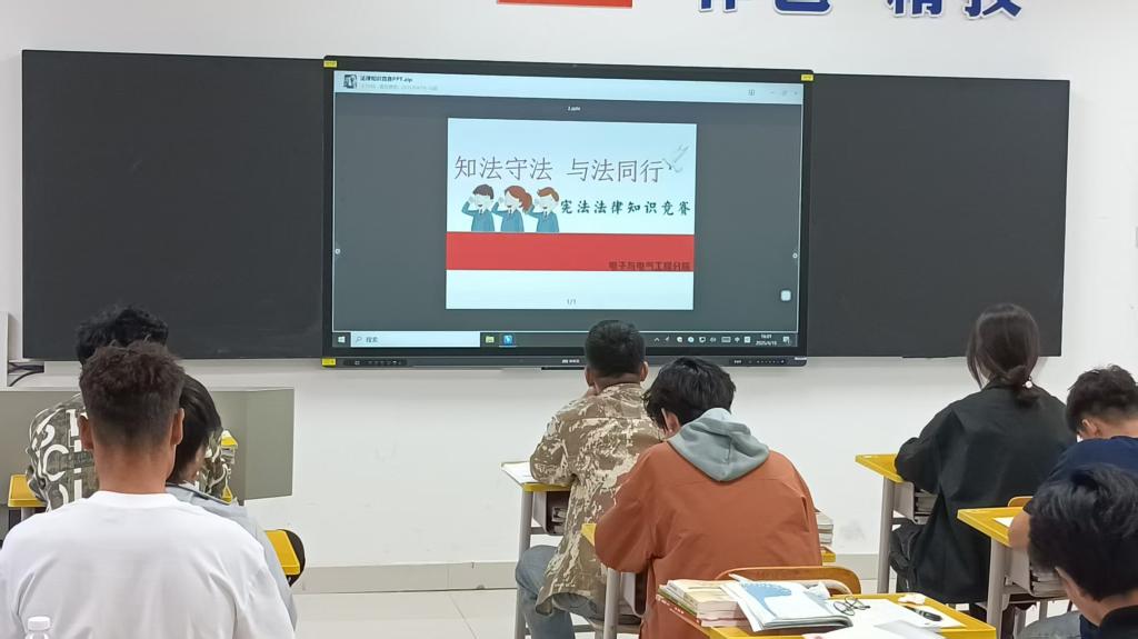 为深入学习宣传贯彻宪法精神,增强青年学生的法治观念,营造尊崇宪法、学习宪法、维护宪法的校园氛围,电子与电气工程分院于4月16日举办了以“知法守法,与法同行”为主题的宪法知识竞赛活动。本次活动旨在通过“以赛促学、以学促用”的方式,引导青年学子深刻理解宪法内涵,提升法律素养,为推进全面依法治国贡献青春力量。