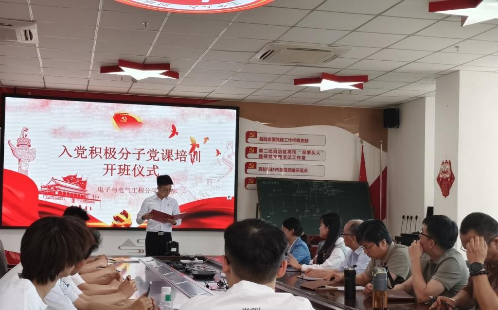 为深入学习贯彻习近平新时代中国特色社会主义思想,切实提升入党积极分子的政治素养与理论水平,电子与电气工程分院于5月7日举行了2025年入党积极分子培训开班仪式。支部副书记刘少华、支部委员及40名入党积极分子参加此次开班仪式。