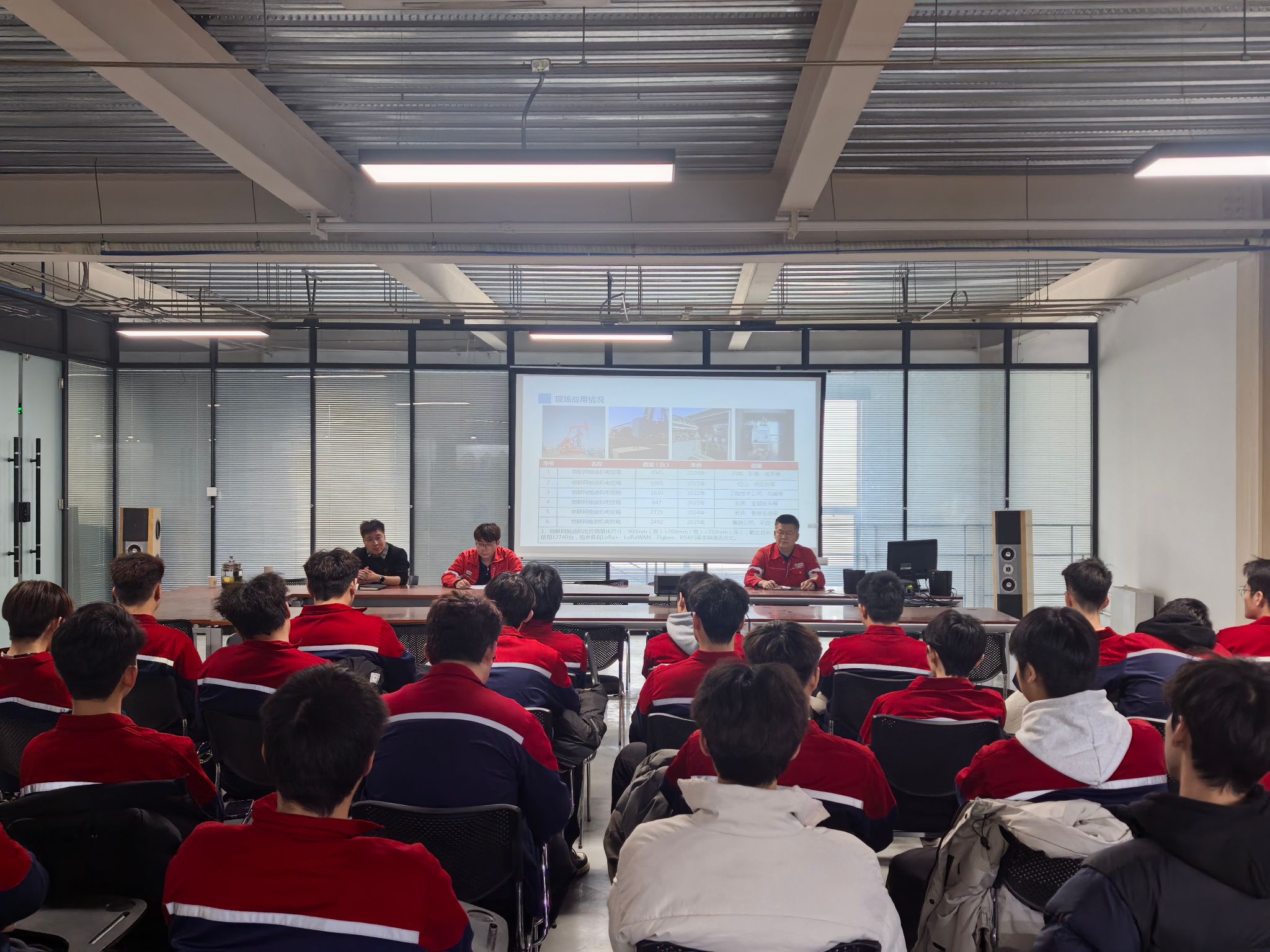 在企业技术骨干的带领下,师生们先后参观了公司的实训室、生产车间。在生产车间,同学们近距离观摩了自动化系统集成,物联网电箱等核心产品的制作流程,技术人员结合产品原理,生动讲解了自动化技术在油田生产中的应用要点,让同学们直观感受到企业对产品品质的精益求精,进一步加深了专业理论知识与实际生产相结合的理解。