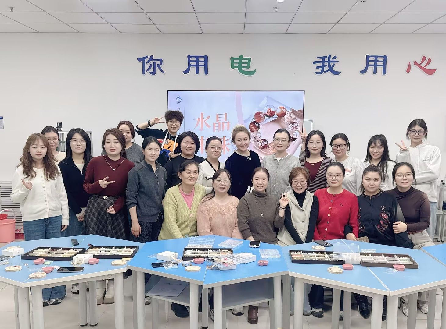 活动现场笑语不断,老师们或专注创作,或交流灵感,或互相欣赏作品。除了DIY制作,现场还设置了水晶鉴赏、灵感分享、互动游戏、作品展示与拍照打卡等环节,进一步增强了活动的趣味性与交流感。每一件成品都凝聚着创作者的巧思与心意,也成为这个节日里最特别的礼物。